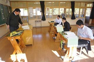 中学生が普段通りの授業でした。定期テスト前で、いつも以上に勉強をがんばっているようでした。