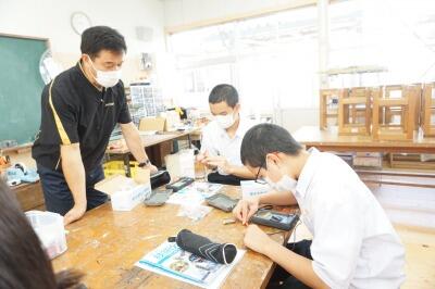 中学K2年生の技術の授業です。「充電と放電」について学習中でした。生徒たちはお互いに作業の手順を確認しながら、電池を使っての実習に黙々と取り組んでいました。