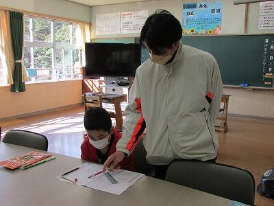 小学1年生の国語は、ドリルを使って漢字の練習をしました。1年生で習う全ての漢字を学習し終えたところです。一生懸命取り組んでいました。