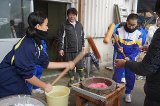 最後には、山村留学実行委員会の濵砂孝義さんから、なろか餅の差し方について教えていただき、閉会式を行いま