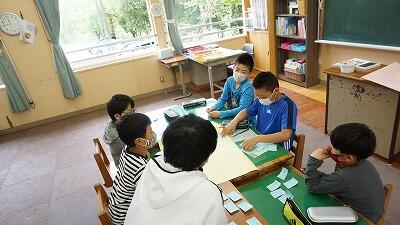 小学4・5年生の総合の学習のようすです。「日本のよさ」についてKJ法で意見を出し合い、整理しています。自分が知らなかった「日本のよさ」もたくさんあったようで、友達の意見を聞きながら大きく相槌を打つ様子が見られました。日本だけでなく、世界中の良いところをたくさん知り、自分の生活に結び付けていって欲しいですね。