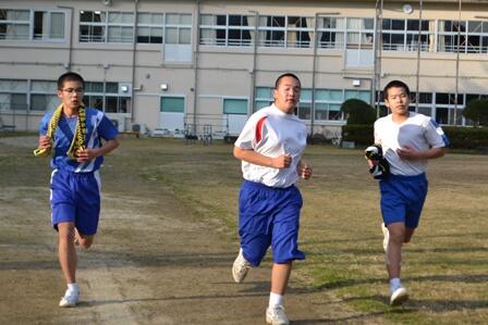 中学生は学校の周りの道路も使って、男子3キロ、女子1.5キロを走ります。