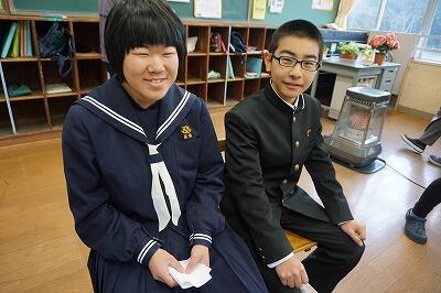 中学生は、講話集会で上手な人の話の聞き方を練習しました。