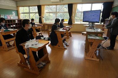 中学2年生は英語の授業、3年生は社会の授業がありました。