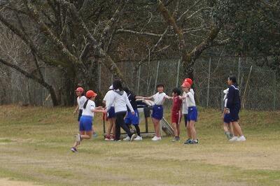 昼休みは小中学生一緒に鬼ごっこをしています。