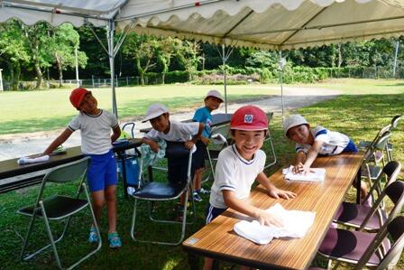 小学生も、力仕事はできませんが、トラックの整備やテーブルふきなど、