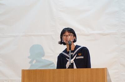 中学生が発表しました。日本語でも難しい表現ですが、英語で見事に表現していました。