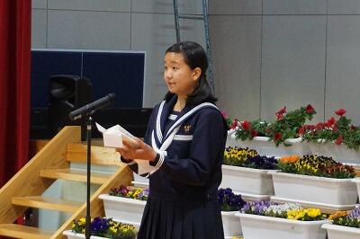 今日は、入学式です。今年は3名が中学校に入学しました。
