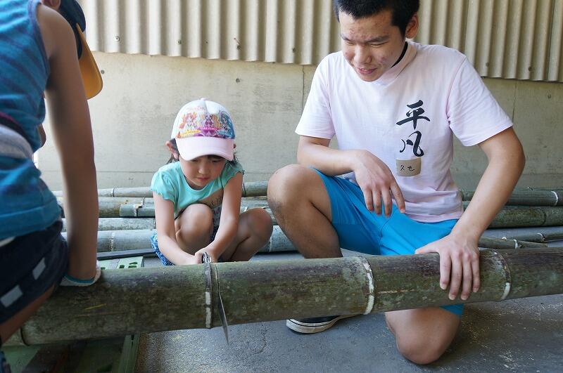 太い竹を何本も切っていきます。みんなで協力しながらがんばりました。