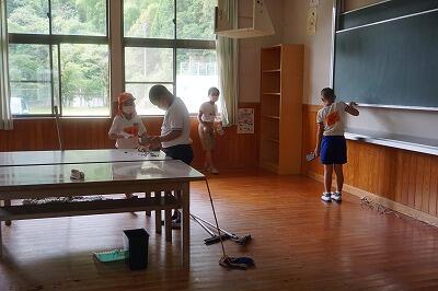 普段は使われておりませんので、まずは全員でしっかり掃除をします。