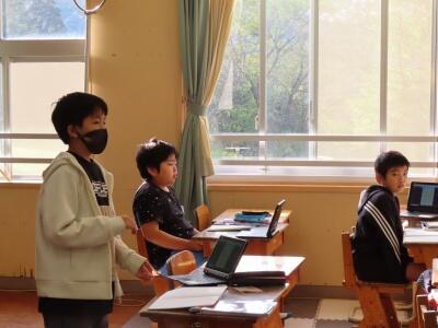 小学6年生の社会では、江戸時代の大名統制の様子について、調べた内容を基に児童が授業しました。授業後、他の児童が質問をすることで授業内容についてフィードバックしていました。