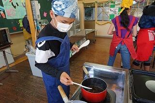 小学校の高学年は調理実習です。片栗粉で作ったタピオカ、