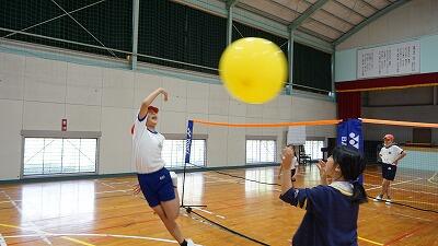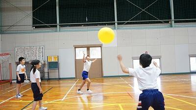 風船バレーでは、みんながボールにさわれるように上級生が声をかけてあげていました。