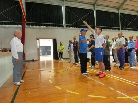 小学生は外でグラウンドゴルフの予定でしたが、室内のためアジャタ大会となりました。