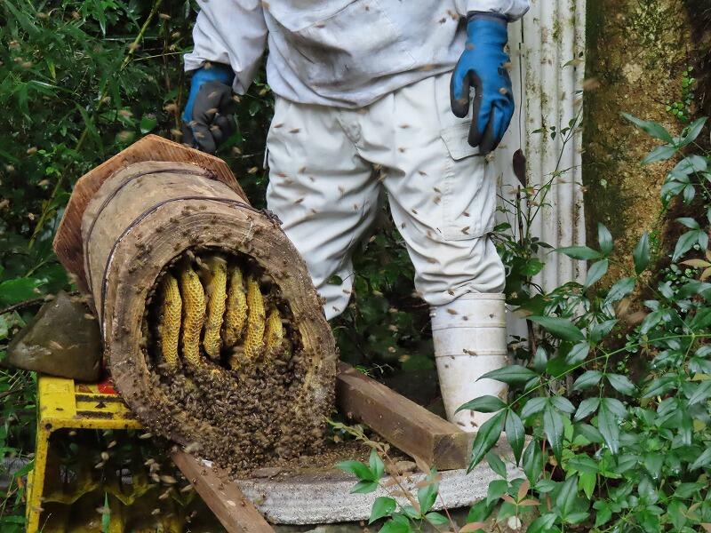 小学生は、はちみつ採り体験を行いました。蜂の巣の大きさに驚き、巣の中から出てくる蜂の多さに驚き、はちみつ