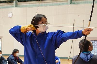 中学生の体育の様子です。本日は最後の弓道の時間でした。矢と弓の持ち方も知らなかった状態から練習を積み重ね、自ら的を射るまで上達しました。先生方のこれまでの教えを踏まえて、自分の射る姿をビデオに撮って確認するなど、様々な方法で技術を磨きました。弓道を通して学んだことをこれからの実生活にぜひ活かして欲しいですね。