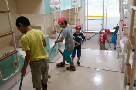 今朝の奉仕活動の様子です。自分たちの部屋をしっかりきれいにします。