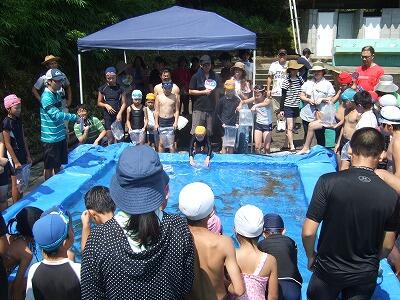 毎年恒例の川遊びがありました。卒業生や以前の留学生、昨年までいらっしゃった先生方なども含め、たくさんの方々が見えて、総勢140名あまりで大賑わいとなりました。天候にも恵まれて、暑い一日となりました。