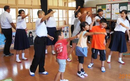 赤団・白団に分かれて、リーダーが考えた応援をみんなで練習しました。
