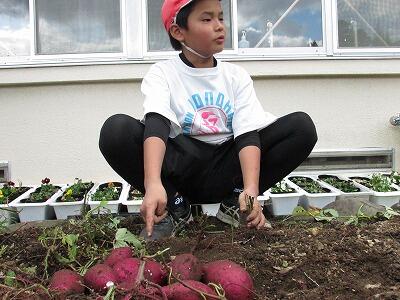 子ども達は、今年も大きく育ったおいもに驚いていました。ほったお芋は、焼き芋にしてみんなで食べました。甘くてとってもおいしかったです。