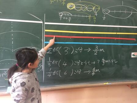 1より大きい分数があることを、テープを実際に切ったり比べたりしながら学びました。