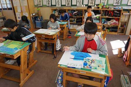 小学5.6年生は、図工で写真に感じたことを絵にしていました。