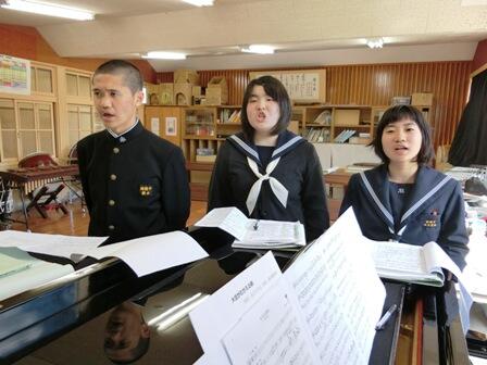 中学3年生は、音楽の授業で卒業式の練習をしました。