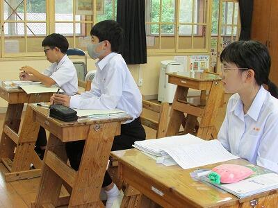 運動場から小学生の元気な声が聞こえてきます。運動会の練習です!その元気な声につられて、二階の教室からついつい声のほうを見てしまいました。今日も暑い日でしたが、子どもたちはエネルギッシュに学校生活を送りました。