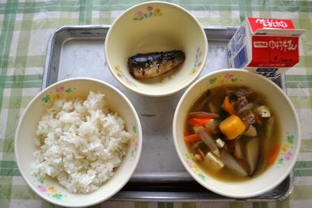 麦ごはん・芋団子汁・いわし梅煮・牛乳