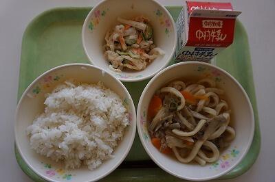 減量麦ごはん・牛乳・鷄ごぼううどん・大根のマヨネーズあえ