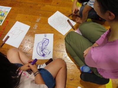 直線やぐるぐるなど曲がった線を書くことに挑戦していました。