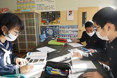 中学2年生の家庭科の授業です。衣服についての学習で、季節によって素材を選ぶ大切さを学んでいました。