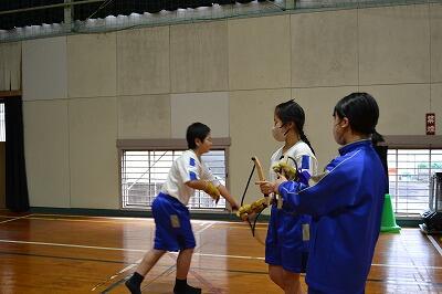 中学生体育の様子です。引き続き、弓道について理論を学び、実践につなげていました。