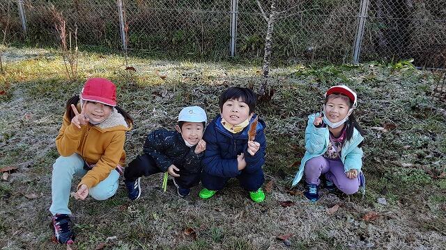 今日は冬の天気としては珍しく、空一杯に雲が広がる天気となりました。曇り空の下で子供たちは紅葉を見つけ、晩秋を感じていました。