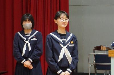 お昼休みの様子です。小・中学生の保体委員会が給食を作ってくださっている調理場の方々にお礼の言葉とともに感謝状を渡しました。