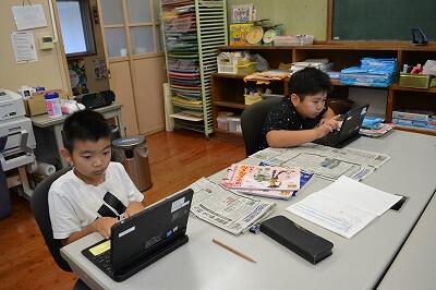 小学5年生の国語では、キュビナを使って真剣に自習をしていました。