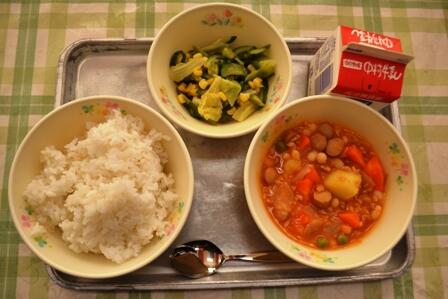 麦ごはん・チリコンカン・グリーンサラダ・牛乳