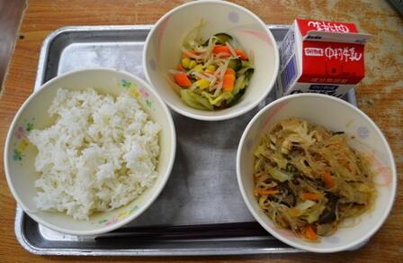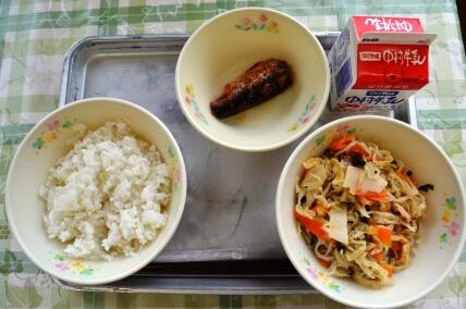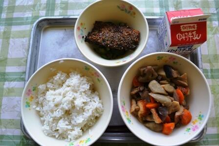 ※本日、県道39号線上鶴付近(学校の5キロほど手前)が土砂崩れのため、牛乳が届かず水筒持参で対応しました。