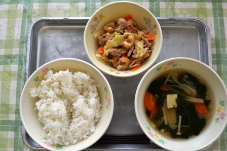 麦ごはん・ほうれん草のすまし汁・味噌炒め