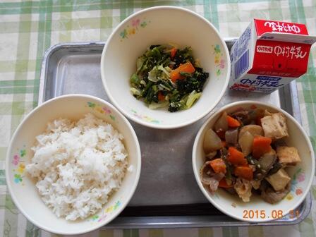 今日の献立は、麦ご飯、とんこつ煮、野菜のピーナツ和えでした。