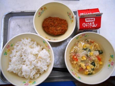 麦ごはん・肉じゃがコロッケ・玉子スープ・牛乳