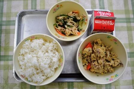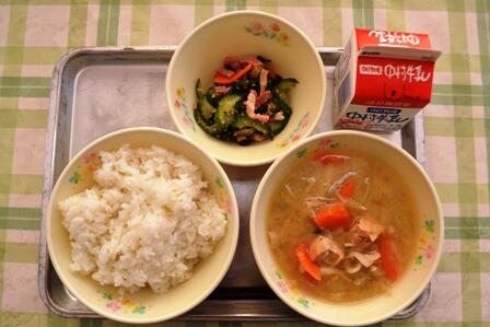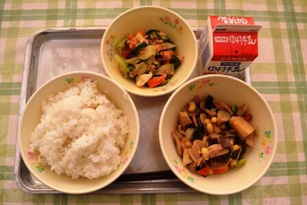 麦ごはん・千切り大根の煮物・ゆず風味あえ・牛乳