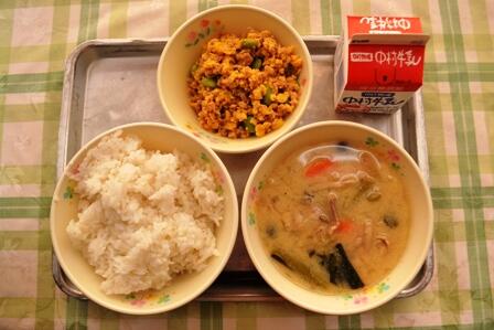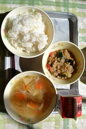麦ごはん・中華豆腐スープ・マーボーズッキーニ・牛乳