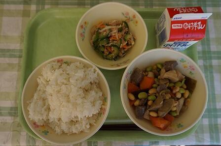 麦ごはん・五目豆・ツナの酢の物・牛乳