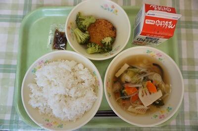 麦ごはん・肉団子スープ・フィッシュカツ・ゆでブロッコリー・牛乳