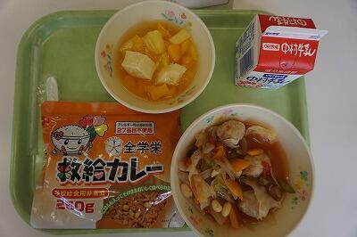 救急カレー・牛乳・肉団子のトマトスープ・豆乳プリンあえ
