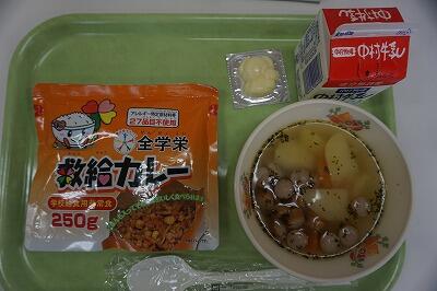 救給カレー・型抜きチーズ・牛乳・野菜スープ
