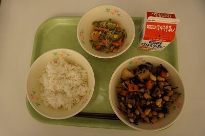 麦ごはん、牛乳、大豆の磯煮、春雨の酢の物