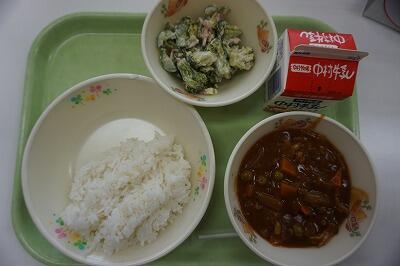 麦ごはん・牛乳・ポークハヤシライス・ブロッコリーのマヨネーズあえ