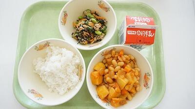 麦ごはん・牛乳・ポークビーンズ・ひじきのサラダ